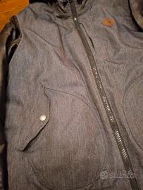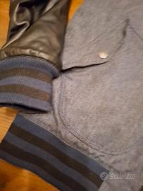 giubotto invernale con cappuccio Vans ragazzo taglia S tessuto jeans e maniche in pelle nera.