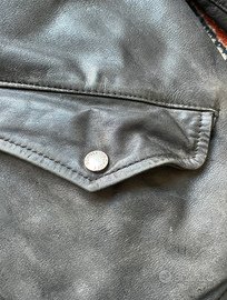 Taglia L (vestibilità regolare). Misure disponibili in foto. La giacca è 100% pelle, molto resistente e con un bel effetto vissuto vintage. Condizioni: pelle in buono stato generale presenti alcune piccole macchie di vernice (vedi foto) elastici su polsi e fondo vissuti/usurati Perfetto per chi cerca un capo originale Schott a prezzo accessibile o per uso quotidiano senza paura di rovinarlo. Zip e bottoni funzionanti. 📍 Consegna a mano a Roma o spedizione