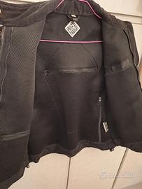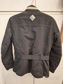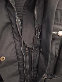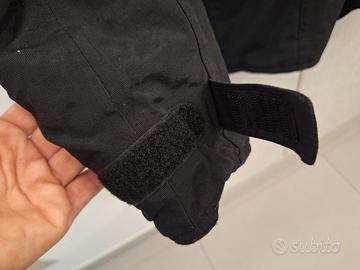 Giubbotto invernale "Tucano urbano" color nero, taglia XS per donna, completo di protezioni spalla-braccio. Bottoni a pressione, numerose tasche interne ed esterne, imbottitura interna traspirante, chiusura a strappo sui polsi, cinta regolabile, collo interno in velluto rigato ed esterno con striscia catarifrangente.
