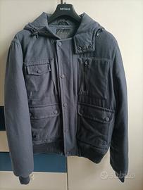 Giubbotto invernale imbottito da uomo, colore blu navy con cappuccio, tasche con bottoni automatici, taglia L, in ottimo stato.