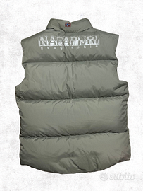 Vendo giubbotto smanicato Napapijri per bambino, in ottime condizioni. Il capo è reversibile, con un lato in verde oliva e l’altro in verde scuro. Realizzato con materiali di alta qualità. Dotato di due tasche con zip e una chiusura centrale con cerniera, presenta il caratteristico logo Napapijri con bandiera norvegese ricamato sul petto.