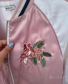 Giacca di stradivarius in taglia L con ricami a fiori sul davanti.