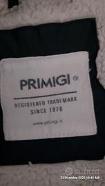 caldo giubbotto , tessuto impermeabile, con cappuccio per bambini taglia 5 anni con. bottoni e zip. tasche laterali con chiusura con bottoni, ai lati sono presente piccole zip, sulla manica sinistra c'è un taschino con cerniera, alle maniche pratico elastico. marchio primigi.