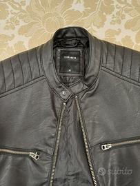 Giubbotto Terranova in similpelle da uomo con colletto coreano, nero, taglia M, usato.