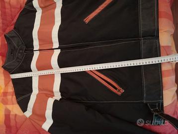 Giubbotto tessuto e pelle, usato pochissimo nessun strappo e nessun segno di usura, cerniera funzionante,tg.52,come nuovo.