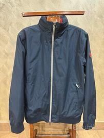 È un giubbotto della Timberland color blu/rosso, e la sua taglia è XL è waterproof resistente all’acqua. Ottimo materiale ulizzato pochissimo.