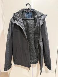 Fodera Interna: Foderato internamente in morbido e caldo Tessuto Orsetto (tipo sherpa/ teddy) di colore grigio scuro/nero, che garantisce un ottimo isolamento termico. La fodera si estende anche all'interno del cappuccio. Chiusura: Doppia cerniera frontale per una maggiore protezione e regolazione.