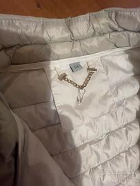 Giubbino giubbotto da donna, trapuntato, “100 grammi”, leggero, 100% poliestere, color grigio perla chiaro, maniche tre quarti, con cerniera e due tasche sul davanti, nessun difetto, taglia 54, ma veste più piccolo, misure: larghezza spalle cm 41,5, larghezza da ascella ha ascella cm 59,5, lunghezza cm 77, ottimo affare!