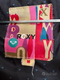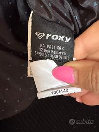 Questo giubbotto trapuntato nero è un modello vintage Roxy, iconico dello stile "Snow Bunny" dei primi anni 2000 (Y2K). Caratteristiche del modello Roxy Il design è caratterizzato da elementi distintivi che fondono l'abbigliamento tecnico da neve con lo streetwear dell'epoca: Dettagli decorativi: Il cappuccio è rifinito con un bordo in pelliccia sintetica e lacci sottili che terminano con caratteristici pompon in pelliccia. Struttura: Presenta un'ampia fascia in maglia a costine in vita (hem) e polsini coordinati molto lunghi, tipici del taglio bomber. Materiale: Realizzato in nylon o poliammide con finitura leggermente lucida e cuciture trapuntate orizzontali.