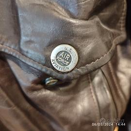 Vendo giubbotto uomo artigianale in vera pelle, marca U.S. Aviation Air Force originale, made in Italy, stile pilota, come nuovo; il giubbotto acquistato circa 20 anni fa in negozio, non ha etichetta del brand, ma ha tutti i bottoni automatici griffati. Colore marrone, con chiusura a zip nascosta, con fodera in pelo rimovibile. Ha 2 tasche esterne verticali e 2 taschini orizzontali con chiusura con bottone automatico polsini e fondo a costine. Ottime rifiniture, caldo. Taglia 54. Misure in cm: spalle 52, lunghezza 70, manica 62. Vero affare.