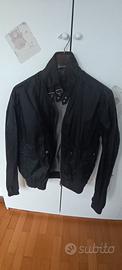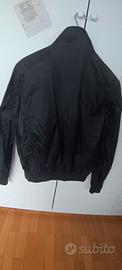 - Si tratta di una giacca nera da mezza stagione con chiusura a zip, un colletto alto caratterizzato da doppie fibbie e fodera interna grigia a contrasto.