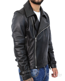 Giubbotto da uomo, stile chiodo da moto, realizzato in vera pelle ovina di nappa, colore nero, 100% Made in Italy, no ecopelle, no sintetico!
