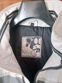 - Giubbotto uomo imbottito con cappuccio richiudibile nel colletto, colore Grigio varie tonalità, marca Mad Kow, Ottime condizioni, tg. L, costo 20 euro.