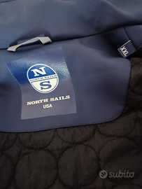 Giubbotto uomo invernale North Sails. Taglia XXL. Colore blu. In tessuto tecnico impermeabile con cappuccio a scomparsa. Logo sulla manica sinistra. Capo caldo con vestibilità simile al "Sailor".