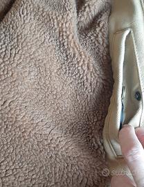 Giubbotto Worker uomo Pull&Bear con colletto e interno in ecopelliccia Teddy, taglia L. Chiusura con cerniera e bottoni, colletto a camicia in Teddy, fodera interna in ecopelliccia Teddy, polsi con chiusura a bottoni, tasche frontali con interno in ecopelliccia Teddy, tasca con zip sul petto lato sinistro, tasca interna con bottone