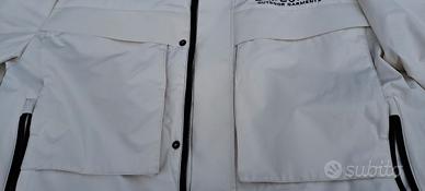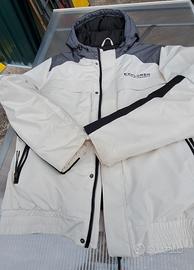 giubbotto uomo invernale con cappuccio bianco e blu taglia XL, con minimo segno di usura sui polsi.
