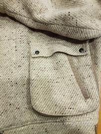 Con grosse tasche, foderato, chiusura con zip e bottoni.