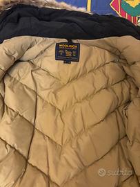 Ottime condizioni, molto caldo, utile x inverno, con cappuccio bordato in pelliccia, nero . Ha una riparazione sotto la tasca dx esterna, come evidenziato in una foto .