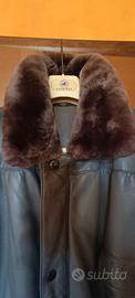 Giacchetto Giacca invernale in vera Pelle Grigio. Collo removibile, vintage anni 2000.