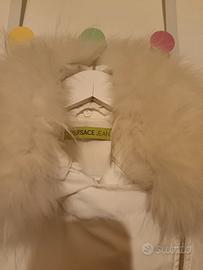 Giubbotto donna sfiancato con collo in pelliccia, colore bianco manca Versace, taglia 42. In perfetto stato