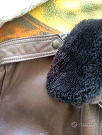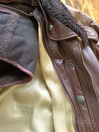 giubbotto vintage anni 80 aviatore. l'etichetta indica la taglia XL, a mio avviso più 48/52 come taglia. giubbotto adatto a chi piace il vintage, pesa circa 2kg. due tasche frontali, due laterali, una interna, collo removibile in due colori, interno removibile. In buono stato per un capo di circa 40 anni
