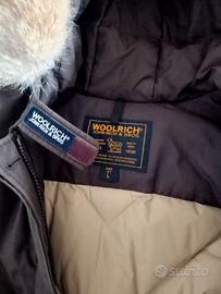 Giubbotto da uomo (anche unisex) imbottito e impermeabile, con doppia chiusura zip e bottoni. Tasche frontali richiudibili con bottone e internamente foderate in pile. Cappuccio con bordo in ecopelo removibile tramite bottoni a clip. Originale Woolrich, usato pochissimo, taglia L, marrone bruciato.