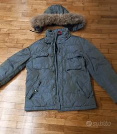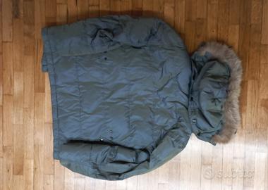 giubino fay colore verde con cappuccio. 2 piccoli buchi sulle maniche e piccolo taglio in basso come da foto.