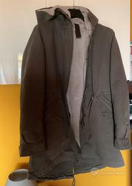 Giubbotto in cotone con pelo interno che si puo togliere,veramente caldo e con cappuccio ,usato pochissimo e come nuovo. Firmato antica cuoieria fiorentina taglia s/m