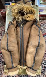 Giubotto montone da aviatore con cappuccio vintage e raro marca Avirex LTD USA modello B-3 made in USA. Colore marrone scuro con interno in pelo marrone chiaro. Taglia 44 americana secondo me é una L. In pelle con interno in pelo Shearling montone. Giubotto usato in ottime condizioni con alcuni segni d’usura ma che lo rendono molto bello. Articolo vintage,raro ed introvabile perché comprato tanti anni fa quindi originale made in USA. Giubotto classico da avitatore con la particolaritá del cappuccio,modello con due tasche laterali aperte,cinghietti di metallo per regolazioni laterali e cinghietto di chiusura cappuccio. Misure: larghezza spalle 61 cm,lunghezza 70 cm,torace 70 cm,in vita 55 cm e lunghezza manica 63 cm.
