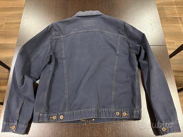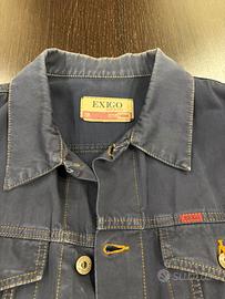 Giubotto da uomo in cotone blu con cuciture in giallo e bottoni in metallo. Marca Exigo, taglia M.