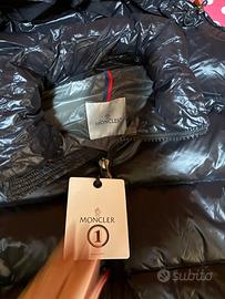 giubbotto nuovo con etichetta simile originale con cerniera cappuccio rimovibile con tasche stemma moncler sul lato del braccio taglia s