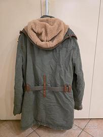 giubotto tipo militare vintage taglia L bello comodo imbottito con cappuccio che volendo si può togliere con effetto consumato usato poco .no perditempo No spedizione.