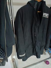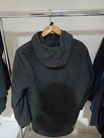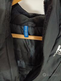 vendo come nuovo giubbino colore nero con cappuccio in pile e imbottitura in piume d' oca maniche strisce di con strappi tasco i laterali cn chiusura più tasche ai lati in alto con cerniera cappuccio con stringenti in elastico in stoffa impermeabile maniche con interno polsini a maglia elastiche vendo prezzo affare nessun difetto taglia L veste comodissimo lunghezza 80 cm vendo 10 euro