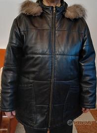 Giubotto nero imbottito donna con cappuccio in vera pelle taglia M marca Meridiana