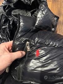 Piumino Polo Ralph Lauren in finitura nera lucida. Capo nuovo, mai usato, con cartellino ancora attaccato. Design imbottito classico, caldo e idrorepellente.