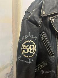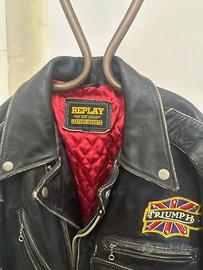 GIUBBOTTO MOTO REPLAY ( pezzo super raro ) VERA PELLE DI BISONTE 100% usato due volte taglia m marca replay colore nero