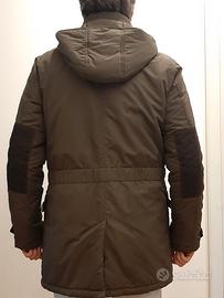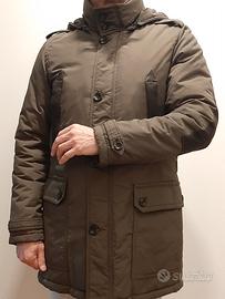 Come da titolo vendo giubotto invernale da uomo modello parka, colore verde scuro con inserti antracite, il cappuccio si può levare, usato in pochissime occasioni, taglia 48 in foto è indossato da persona alta Ht 180.