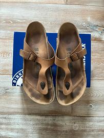 Birkenstock modello Gizeh colore tabacco brown in pelle oleata tg. 45 (pianta stretta) in condizioni buone (spedisco con scatola non sua come da foto)