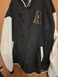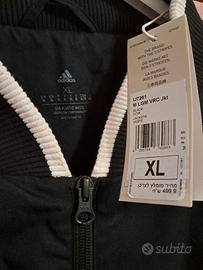 bellissimo giubbotto n6ero,con maniche bianche rifinite da polsini neri a maglia a righe,moderno,versatile,marca Adidas, nuovo con cartellino,taglia xl ma va bene anche per una xxl essendo comodo prezzo affare 40 euro