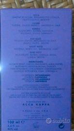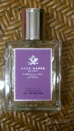 Glicine di Acca Kappa eau de parfum 100 ml Wisteria di Acca Kappa è una fragranza del gruppo Floral da donna. Le note di testa sono Melone, Frutti Esotici, Bergamotto e Limone di Sicilia; le note di cuore sono Glicine, Lillà, Giglio Bianco e Magnolia; le note di base sono Vaniglia, Eliotropio, Muschio, Ambra e Sandalo.