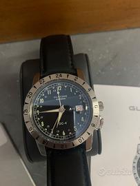 Movimento automatico calibro GL 293 ( sellita SW300), che dispone di una riserva di carica di 42 ore, 21 rubini e ha una vibrazione di 28.800 A/h. Cassa in acciaio inossidabile con un diametro di 42 mm (larghezza senza corona), spessore 12 mm . Vetro zaffiro bombato antiriflesso e antigraffio. Impermeabilità 20 ATM. Corona a vite. Quadrante Nero opaco con Super-LumiNova. Fondello a vite con oblò in vetro zaffiro. Ghiera acciaio bidirezionale. Cinturino Glycine in tessuto nero con fibbia ad ardiglione acciaio e cinturino pelle aftermarket. Funzioni: data, ora, minuti, secondi, GMT (2 fusi orari), visualizzazione 24 ore