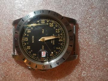 ref. GL0377 Orologio stile vintage, Cassa acciaio diametro 40mm, Quadrante nero con numeri color oro, bellissimo!!! Doppio Cinturino 1 nato nero con fibbia ad ardiglione. altro in cuoio entrambi mai utilizzati, piu un terzo, cinturino nato elasticizzato (in foto)