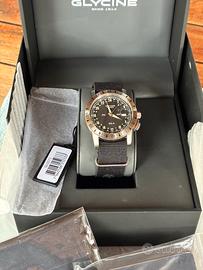 Per riduzione collezione vendo questo quasi introvabile Glycine DC4 Purist referenza GL0072 con scatola originale e documentazione originale. Movimento automatico svizzero GL293 , corona a vite, fondello trasparente e massa oscillante logata Glycine. Cassa da 42mm, ansa da 22mm, impermeabile 200 m. ( meglio se convalidato da specifico test di impermeabilità), vetro zaffiro. No scambi e/o permute. Vendita tra privati con clausola visto e piaciuto.Orologio tenuto in modo curato. Spedizione assicurata a mezzo DHL o BRT spese 50 euro.