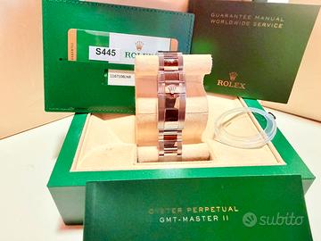Rolex GMT master ll chiamato (BATMAN) referenza:116710 BLNR uscito di produzione!!!! Movimento:3186, cassa 40 mm , vetro zaffiro, quagrante nero con indici crhomalith, cinturino oyster,ha ancora alcune pellicole nella chiusura….aquistato a luglio 2018 full set. Garanzia non intestata di portogallo..messo 2 volte e poi chiuso in cassetta,non trattabile, primo contatto via E-MAIL accetto permute di mio gradimento anche superiore. Dichiaro l’originalità dell’orologio.