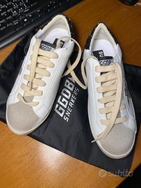Vendo golden goose numero 38 come nuove per inutilizzo. Le scarpe sono state messe si e no due volte, infatti sono perfette. Le cedo insieme alla loro sacca.