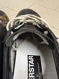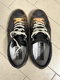 Splendido paio di golden goose acquistato ad un evento e ma piu rifatte. Suola perfetta cosi come anche gli interni. La resina trasparente che riveste la pelle nera é un po' saltata via causa utilizzo. A disposizione per informazioni