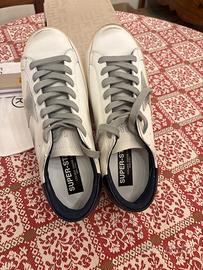 vendo scarpe golden goose nuove taglia 42 di colore bianco con linguetta blu.