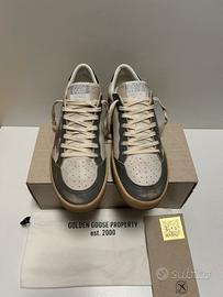 Golden Goose Ballstar Taglia 40 La soletta interna è lunga 27.5 cm circa Nuove, mai indossate. In vera pelle beige, grigie e twilight con logo sulla linguetta brillantinato effetto used Golden Goose. Prodotto 100% originale, completo di scatola originale, dust bag, passaporto di autenticità, numero di serie e tag NFC per verifica immediata. A differenza della maggior parte delle scarpe contraffatte in circolazione, queste sono nuove e assolutamente originali.💪🏻 Massima disponibilità: è possibile visionarle di persona nella zona di Pordenone. Contattatemi per ulteriori informazioni. No perditempo. impossibili da trovare in saldo!