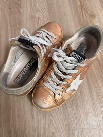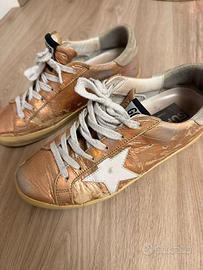 Vendo per inutilizzo Golden Goose utilizzate per diversi anni, possibilità di metterle a nuovo da Calzolaio (già informata) - valore scarpa nuova euro circa 450/500 euro Taglia 36 donna colore arancione metallizzato edizione limitata