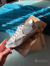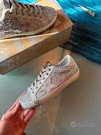Golden Goose in glitter argento: -taglia 38 -mai utilizzate, come nuove -scarpa alla moda luxory -originali, con ricevuta di acquisto su richiesta -spedizione entro 24h